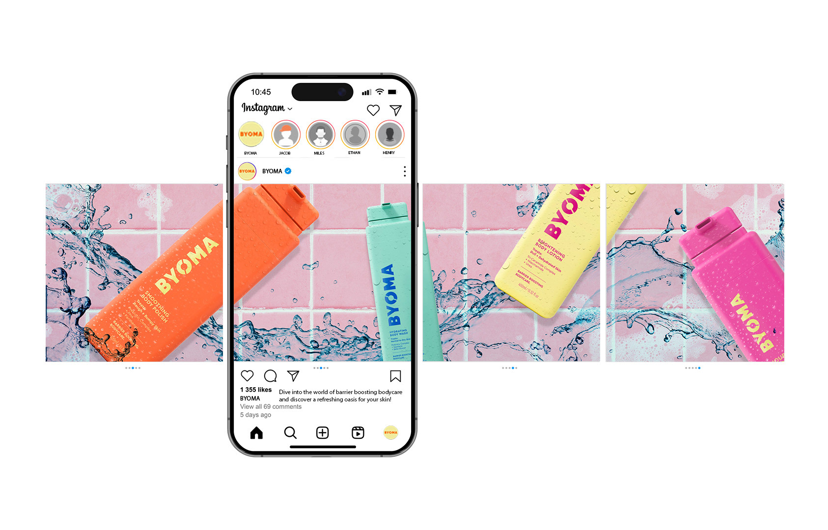 Instagram carousel for the brand, BYOMA Skincare, to showcase their new body care line.
