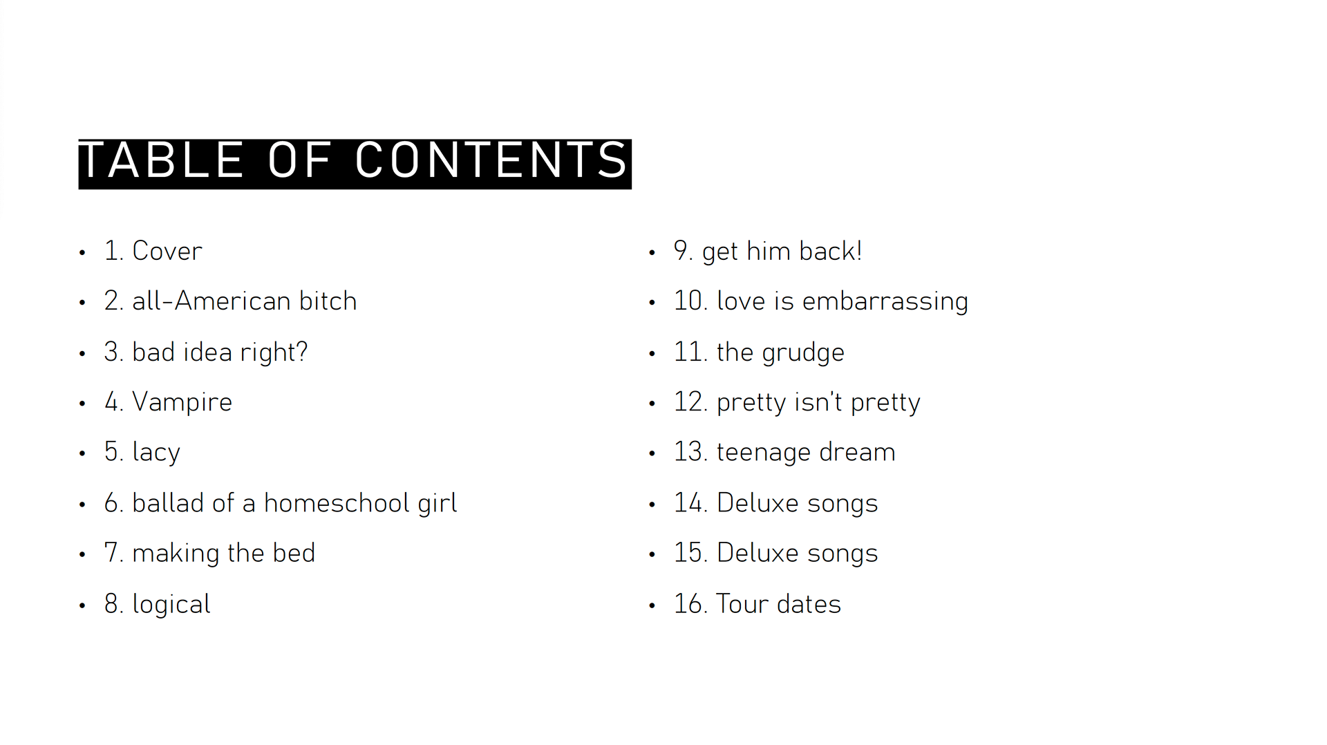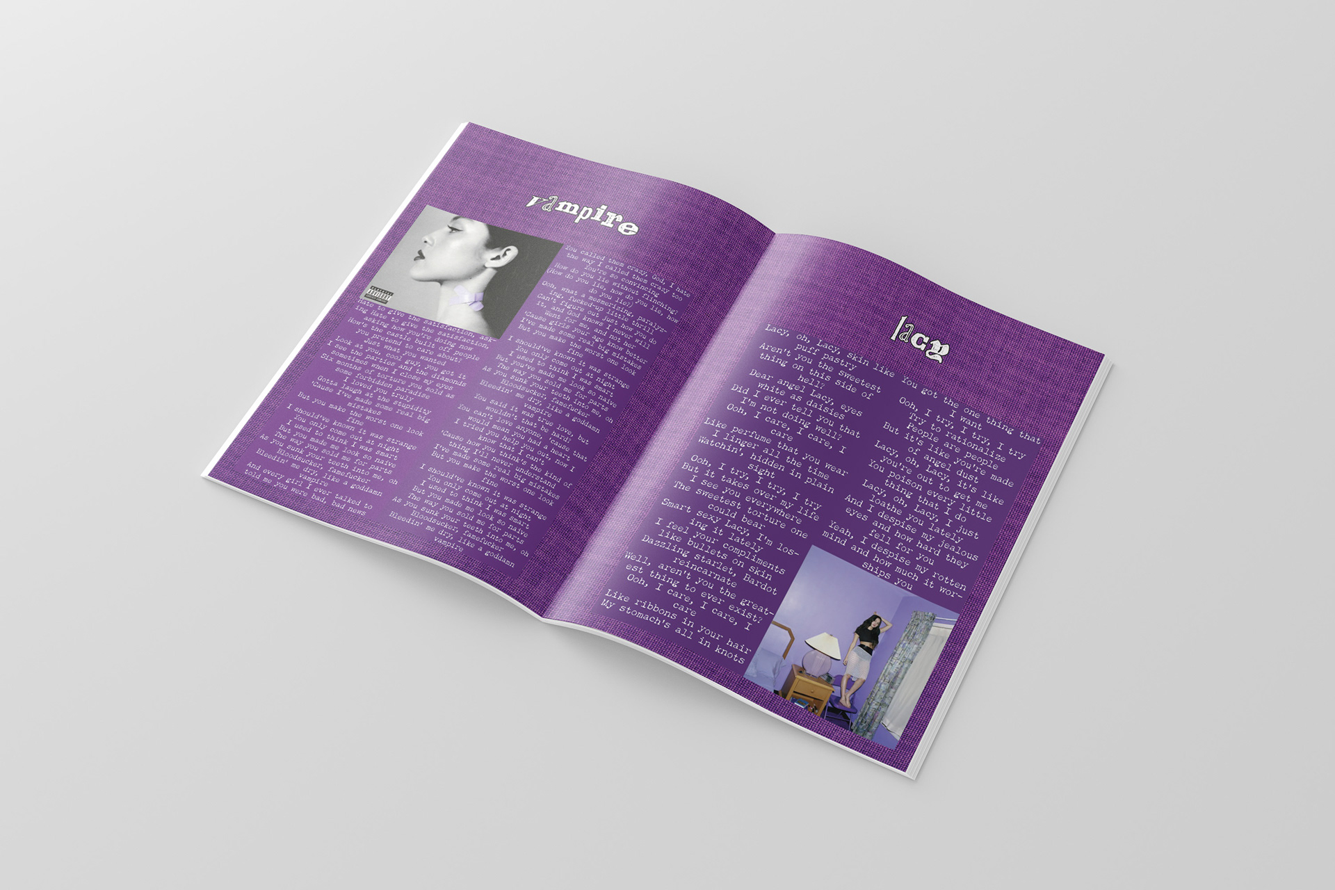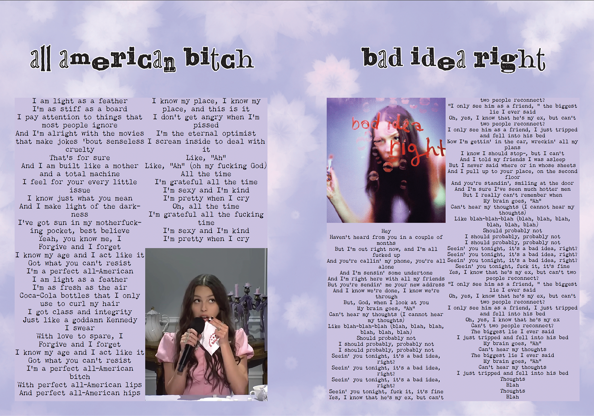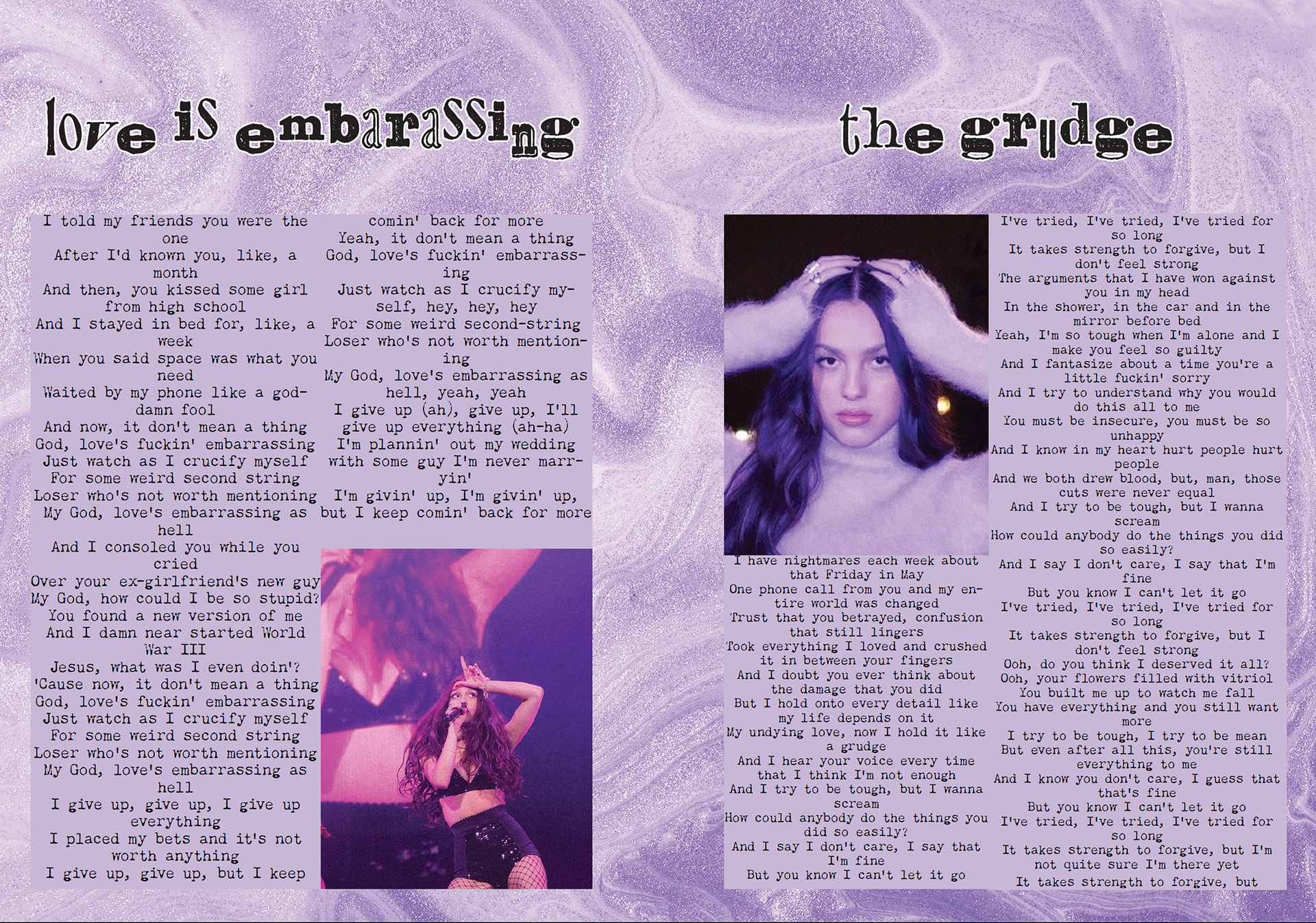 A lyric book for Olivia Rodrigo's Sophomore Album, GUTS. Intended to be passed out during the GUTS tour during the show so the audience has a memorable keepsake.